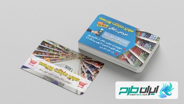 دانلود رایگان و لایه باز کارت ویزیت سوپر مارکت با طیف رنگی CMYK مناسب برای چاپ افست می باشد که کمترین تغییر رنگ را پس از چاپ خواهد داشت. شما می توانید به راحتی این کارت را لایه باز در ایران طرح به شکل رایگان دانلود کنید.