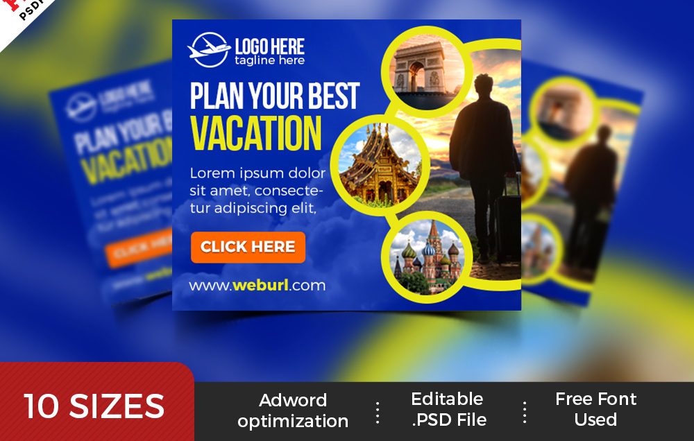 مجموعه 10 بنر تبلیغاتی برای آژانس مسافرتی را آماده کرده ایم. این مجموعه 10 بنر تبلیغاتی برای آژانس مسافرتی برای اپراتورهای تور و آژانسهای مسافرتی، بستههای تور، تعطیلات، پیادهروی و کمپینگ، گشتهای شهری، هر بسته مسافرتی و غیره، که میخواهند خدمات یا وبسایتی را تبلیغ کنند، مناسب است. مجموعهای از قالبهای تبلیغات بنر خدمات مسافرتی لایه باز با 10 اندازه مختلف ارائه میشود که با اندازه بنرهای Google adwords نیز مطابقت دارد. همه عناصر اصلی با استفاده از Adobe Photoshop قابل تنظیم هستند و به راحتی می توان فونت، متن، رنگ را ویرایش کرد. دانلود شامل 10 اندازه مختلف، 72 dpi، فایل RGB PSD است.